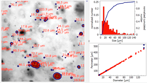- Particle size distribution spectrum: Detection of minimum to maximum diameters between 10 – 2,500 µm depending on the equipment model and application