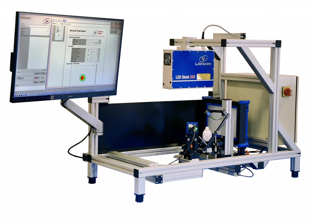 The LaVision Quality Control software is the central element for efficient, automated and seamless quality testing of household and cosmetic sprays. It enables comprehensive data acquisition, analysis and documentation of all relevant spray parameters and ensures consistent and standard-compliant quality assurance – from the first test to series production.