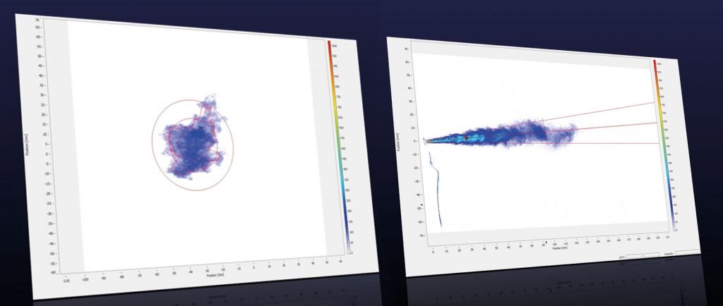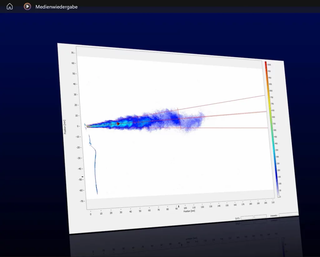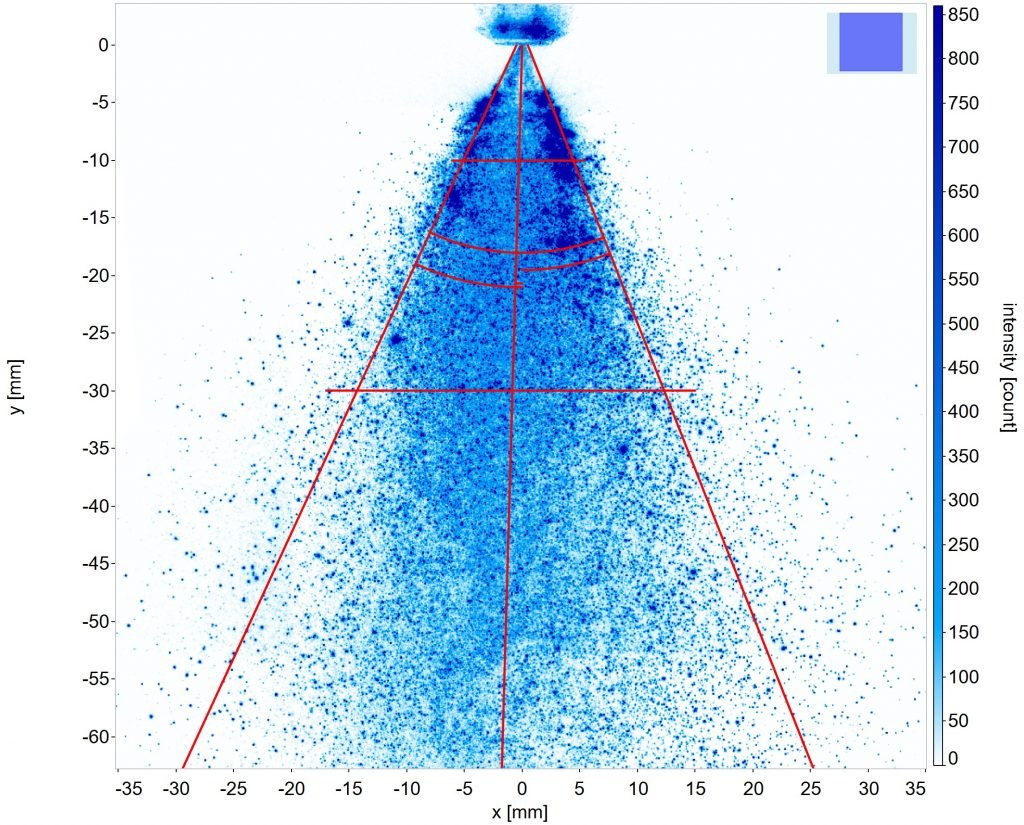 - Depending on the optical arrangement, DaVis provides data on the spray pattern (radial sections) or on the beam shape (axial sections).